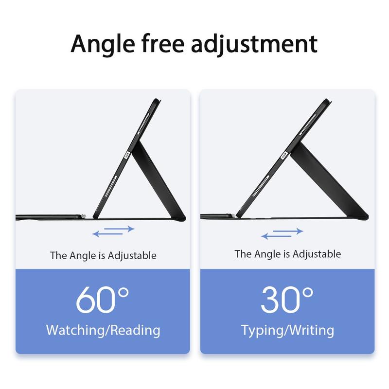 Slim a Lightweight Design vám umožní snadno přenášet tento fantastický pouzdro na klávesnici Ducis Bluetooth pro iPad Air 13 2024/2025, iPad Pro 12.9 2020/2021/2022 všude, kde je všude. 2-in-1, klávesnice Bluetooth a pouzdro tabletu. Klávesnice je připojena s duálním magnetem a je velmi stabilní a nebude se pohybovat rychle. Má také touchpad s nastavitelnou citlivostí a dlouhodobým tlačítkem. Užijte si hands-free zážitek s používáním pouzdra jako podpůrného stojanu v několika úhlech.