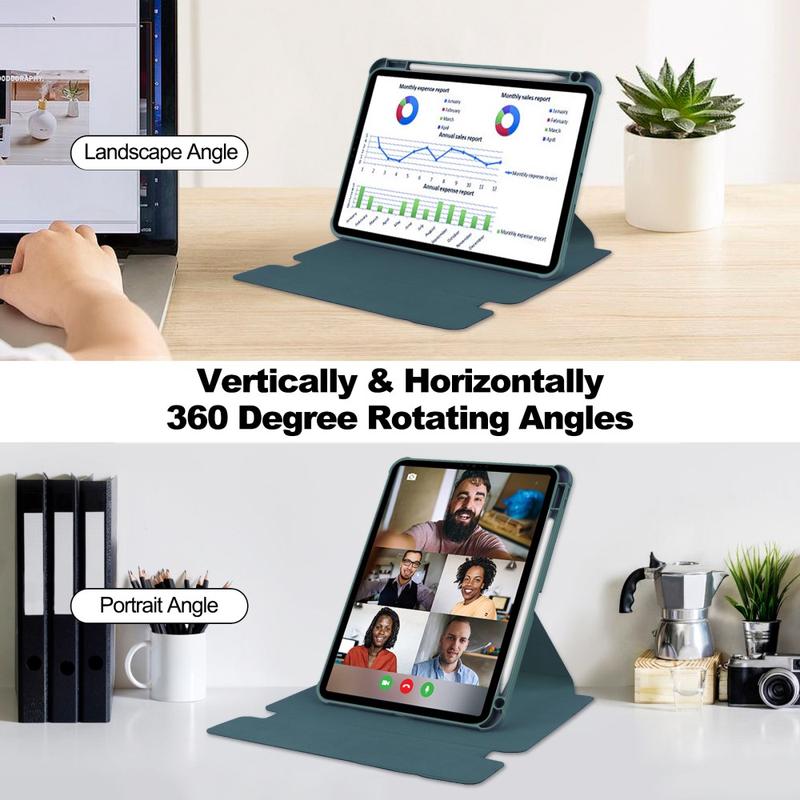 Rotating tablet cases rose to popularity as device screens became larger and more indispensable for everyday tasks. The 360° swivel provides ergonomic advantages, helping you achieve the ideal angle for viewing and typing. Additionally, this design minimizes neck strain by letting you position the screen at the most comfortable height and orientation, enhancing your overall tablet experience.