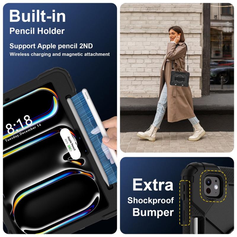 Otočné Pouzdro Heavy Duty 360 s Popruhem na Ruku a Rameno pro iPad Pro 11 (2024), iPad Pro 11 (2025)