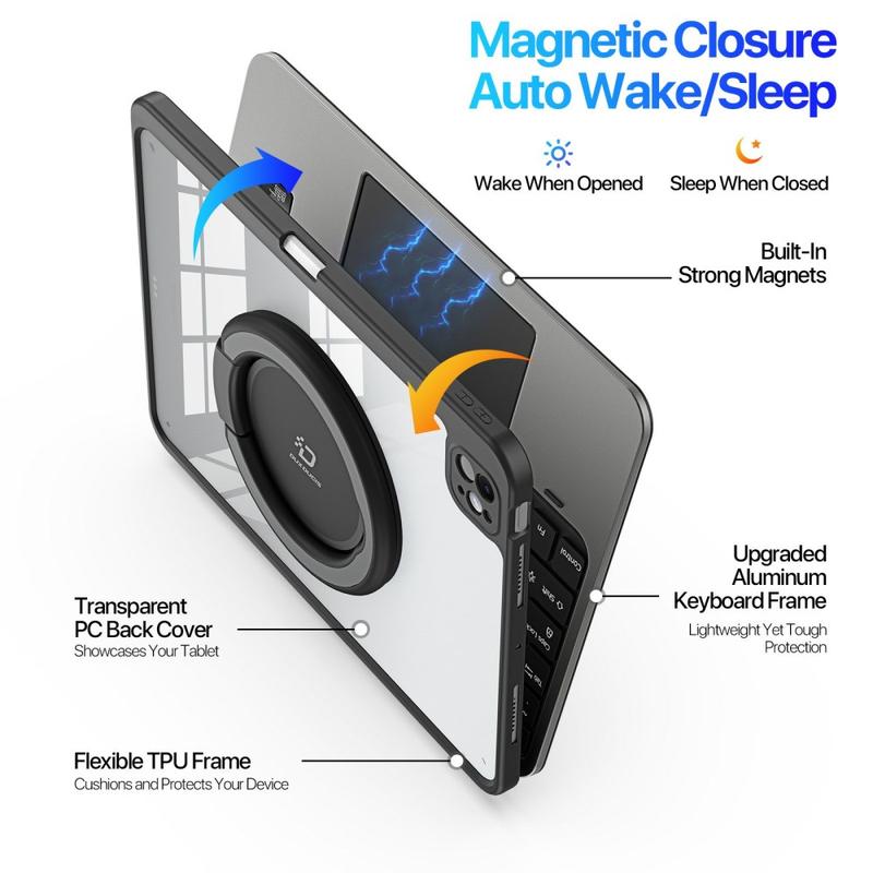 The DUX DUCIS VK Series Keyboard Case transforms your iPad Pro 11 (2024), iPad Pro 11 (2025) into a versatile workstation and entertainment hub. Combining a protective case, detachable keyboard, multi-touch trackpad, and kickstand, it adapts to any scenario with a simple open-close action.