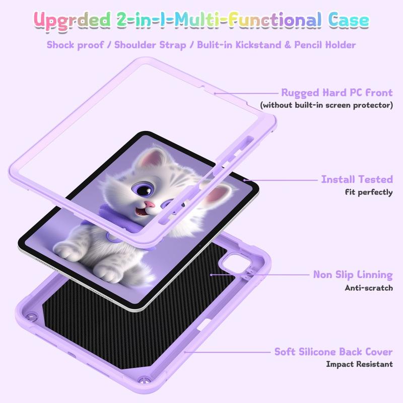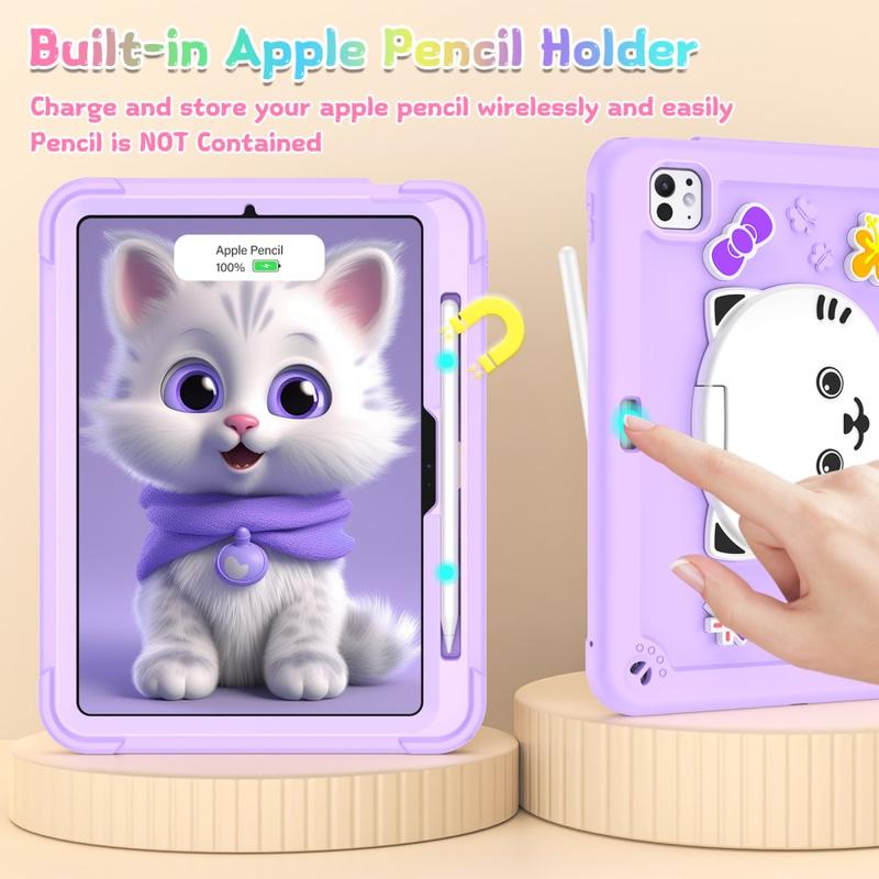 Cute Cat Hybrid Case with Kickstand, Shoulder Strap & Stylus Holder for iPad Pro 11 (2024), iPad Pro 11 (2025)