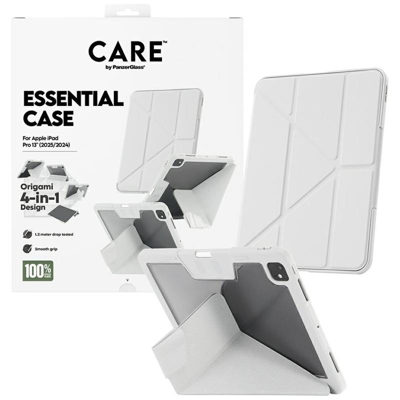 The CARE by PanzerGlass Essential case is designed to give your iPad Pro 13 (2024), iPad Pro 13 (2025) complete protection, smart functionality and a premium feel. Its innovative origami-style 4-in-1 folding cover makes it easy to place your iPad at the perfect angle for watching movies, working, reading or FaceTiming. Whether you're at home, in the office or on the go, this versatile stand adapts to every moment.