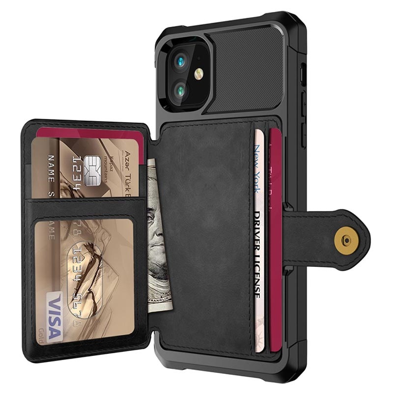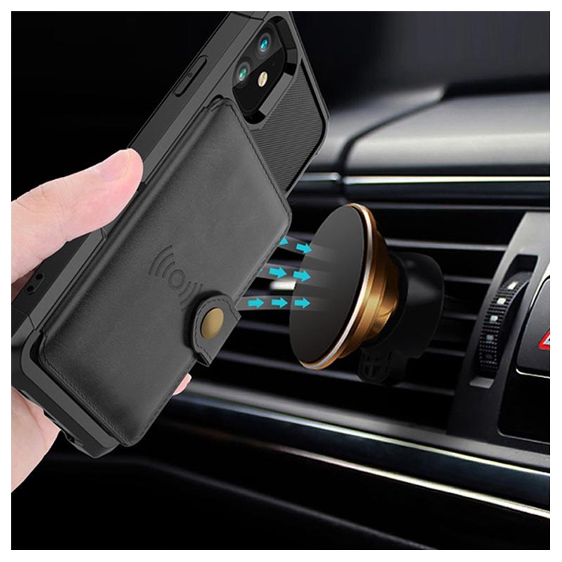 - iPhone 12 Mini Peněženka má zabezpečené uzavření tlačítek, design peněženky a několik slotů pro karty s peněžní kapsou