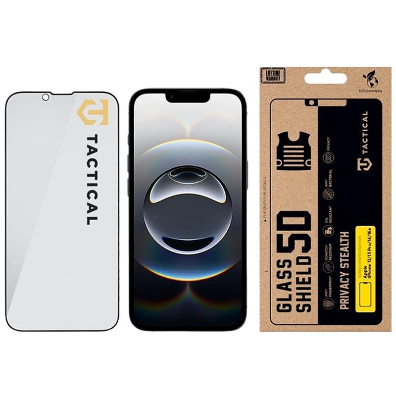 Protect your iPhone 13/13 Pro/14/16e/17e from impacts and unwanted looks with the Tactical Glass Shield Privacy Stealth 5D. Built for demanding everyday use, this privacy screen protector helps shield your display from scratches and shocks while keeping on-screen content visible only to you. The multi-layer construction combines durability, clean visuals, and a precise fit for confident daily protection.