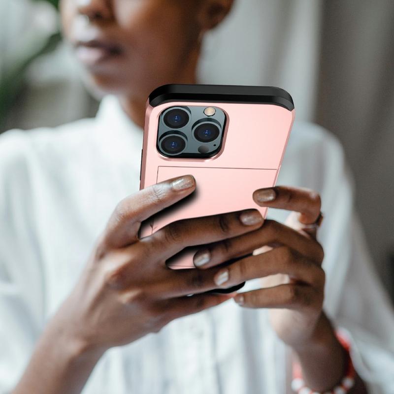 - Unique hybrid case with sliding card slot for iPhone 13