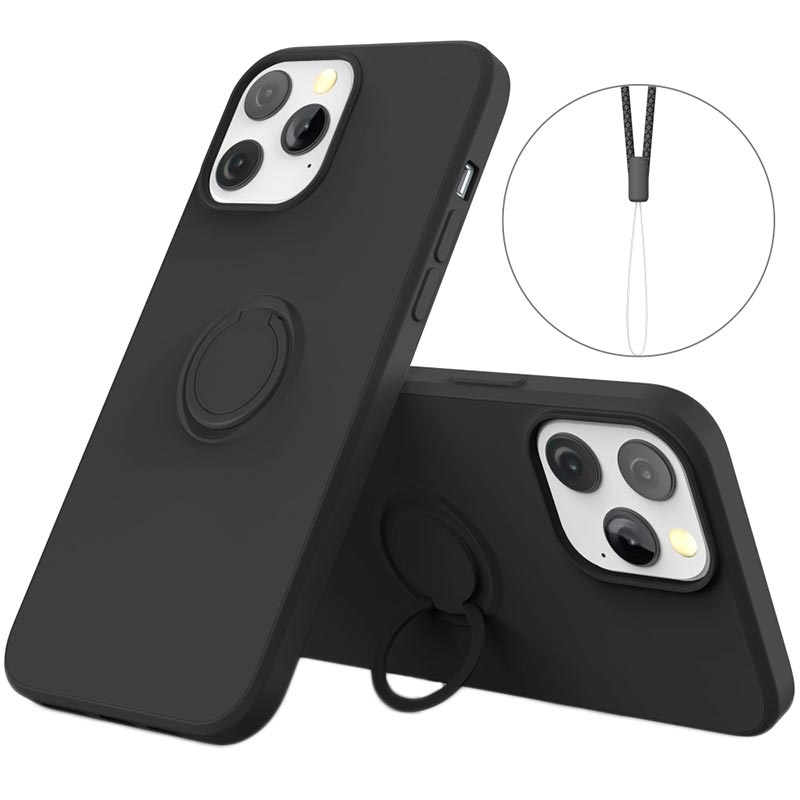 Kapalný silikonový pouzdro s držákem prstenu pro iPhone 13 Pro Max - s popruhem