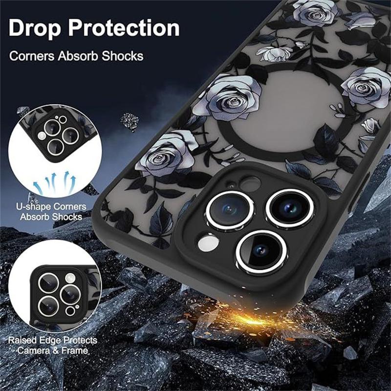 The Rose Flower MagSafe Case for iPhone 13 Pro offers a perfect fusion of vintage charm and modern innovation. With its durable hybrid construction, anti-fingerprint finish, and full MagSafe compatibility, it protects your phone while keeping it stylish, slim, and functional.