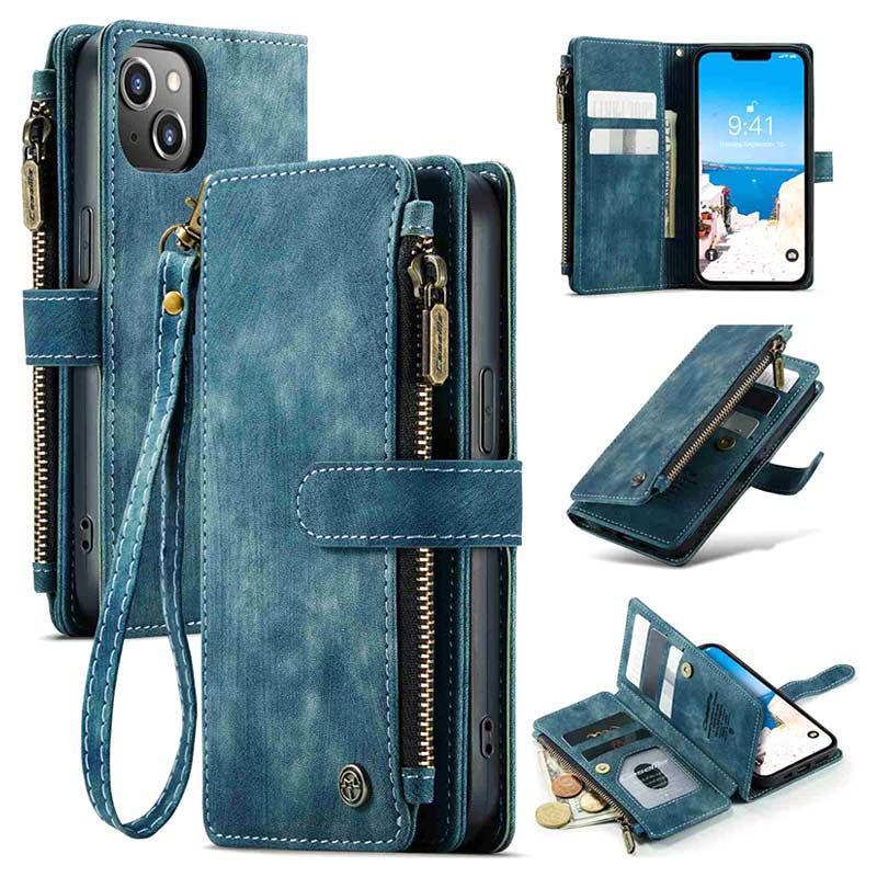 The Caseme C30 multifunctional wallet case for iPhone 14 brings exceptional all-around protection and an exclusive, refined design. This elegant case is made of premium polyurethane, reinforced with a shock-resistant TPU inner cover that snuggles your iPhone 14 perfectly. Meanwhile, the Caseme C30 wallet case is enhanced with numerous card slots, one large money compartment inside, and one outside zipper pocket, all protected by a secure magnetic closure.