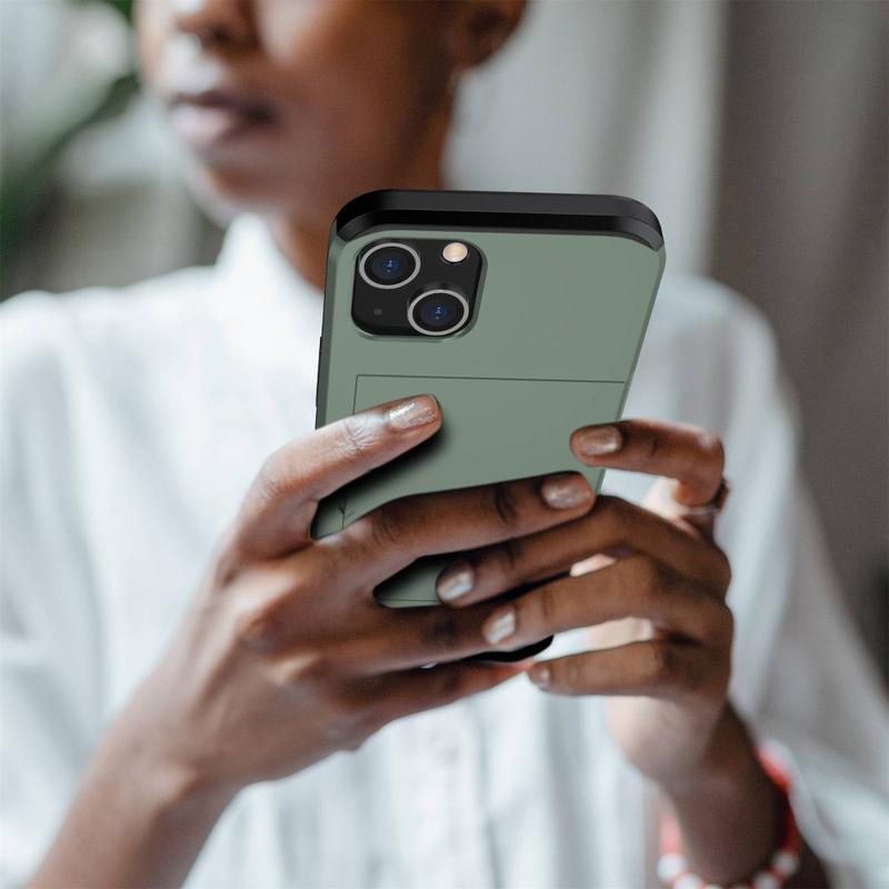 This protective case for iPhone 14 includes a handy card slot, designed with a sliding function, to stock your ID, credit card, or other. Besides that, its shielding features will keep your precious iPhone 14 undamaged, without giving it additional bulk and weight.