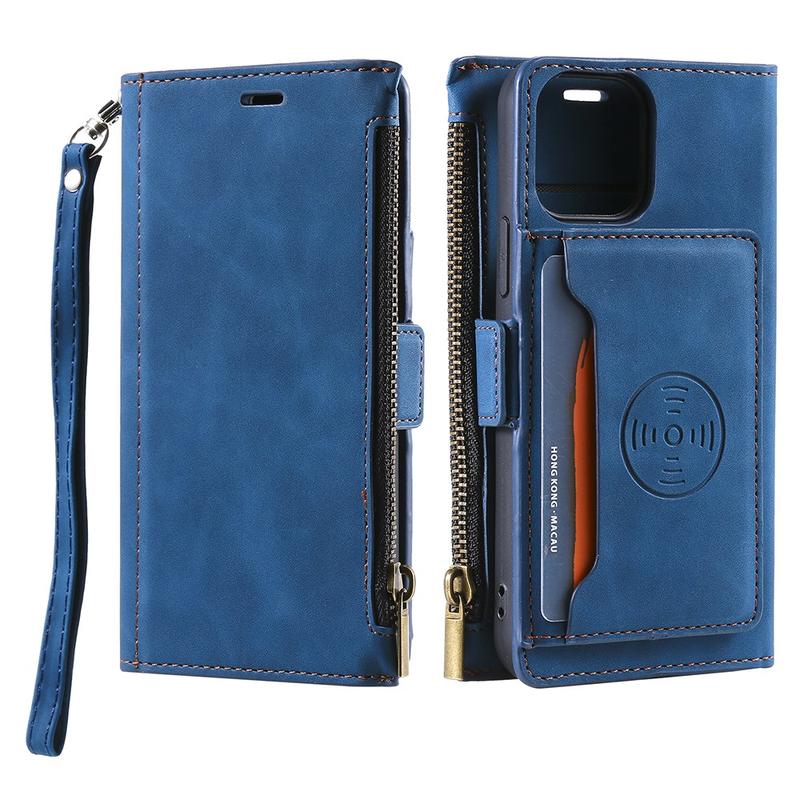 Saii Zipper Wallet Case with Strap for iPhone 14 Plus