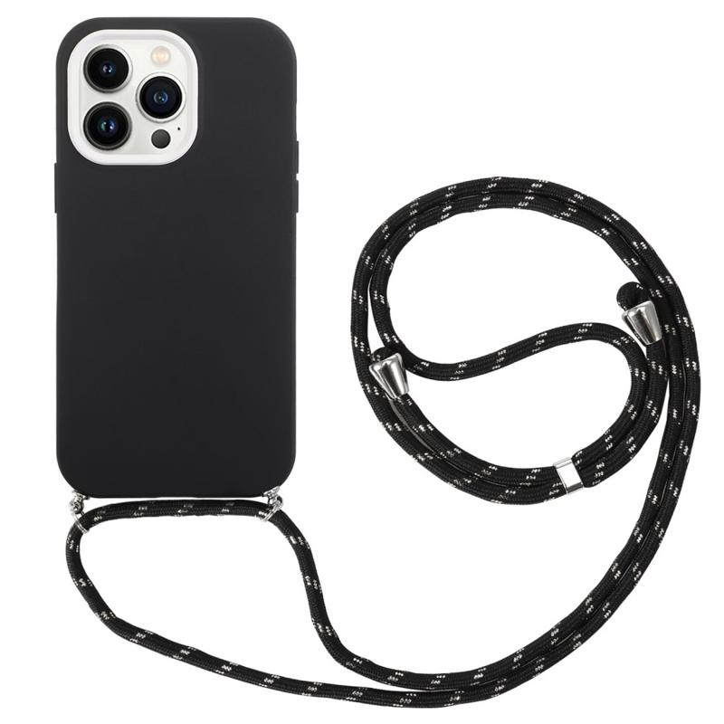 Pro iPhone 14 Pro 3 v 1 PC rámeček + kroužek objektivu + zadní pouzdro TPU na mobilní telefon Ochranný kryt proti pádu s dlouhou šňůrkou