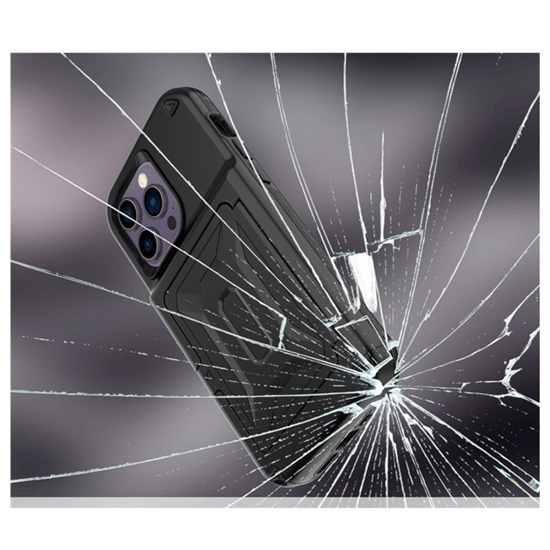 Pro iPhone 14 Pro Cardcase Series Kickstand PC + pouzdro TPU Funkce zrcadla Držák karty Tlustý kryt telefonu