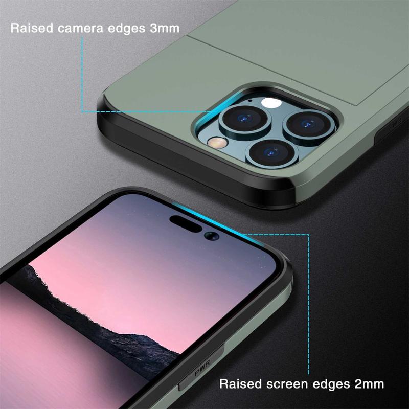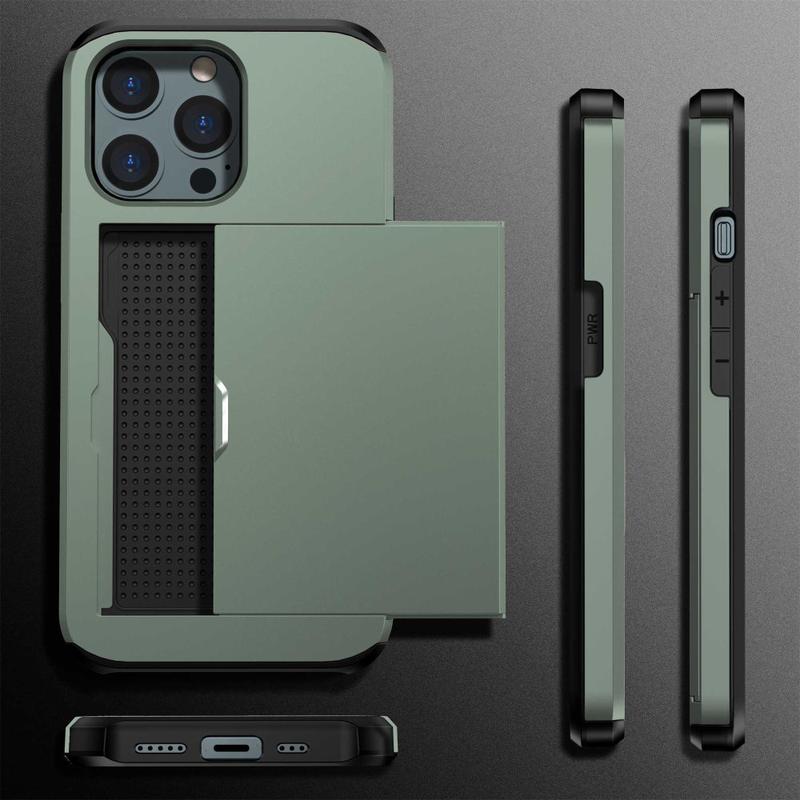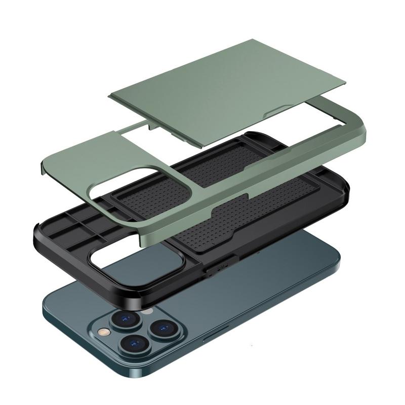 iPhone 14 Pro Hybrid Case with Sliding Card Slot - Army Green