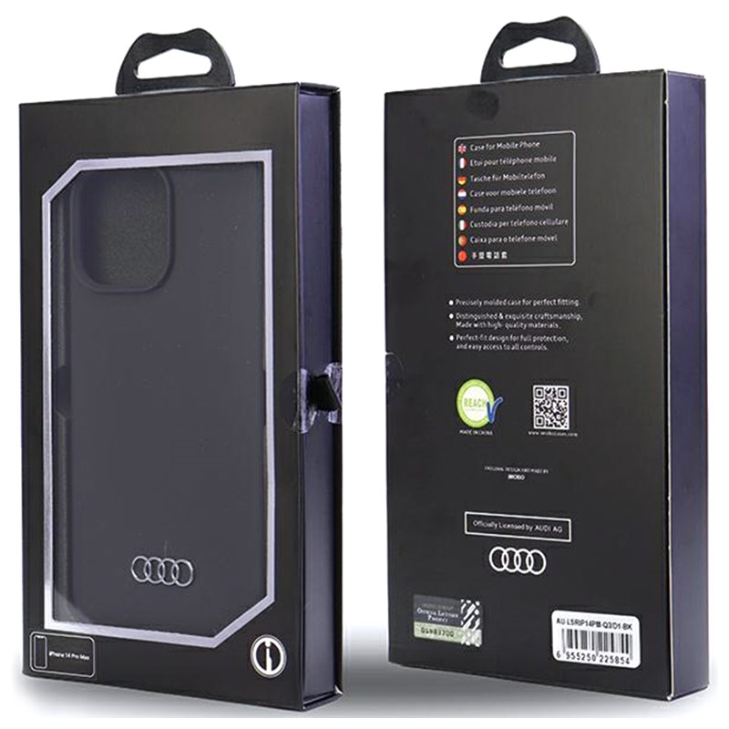 - Prémiové silikonové pouzdro Audi určené pro iPhone 14 Pro Max