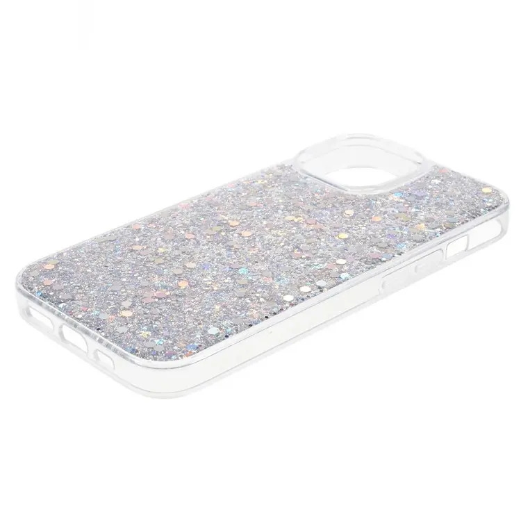 - Beautiful iPhone 15 TPU cover with glitter flakes