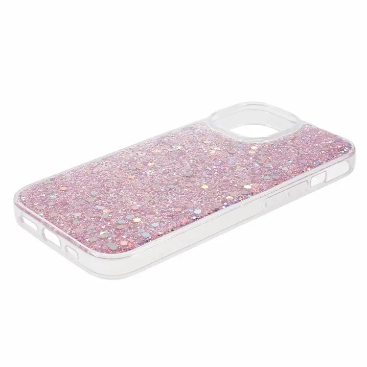 - Beautiful iPhone 15 TPU cover with glitter flakes