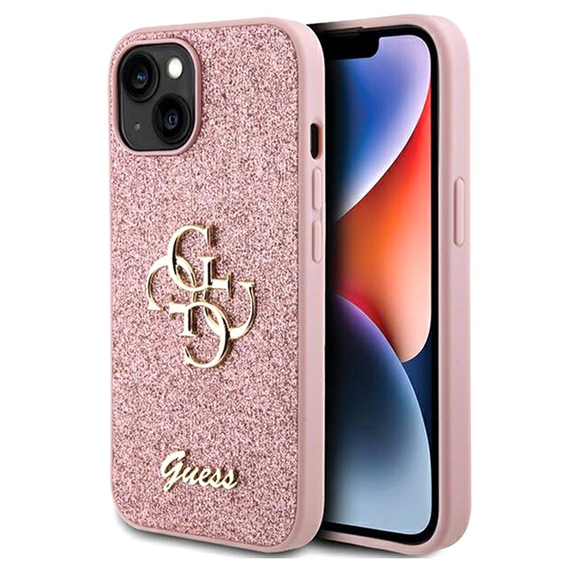 - Spectacular Guess Fixed Glitter 4G Metal Logo cover for iPhone 15