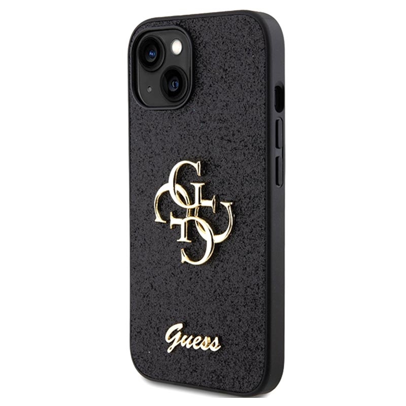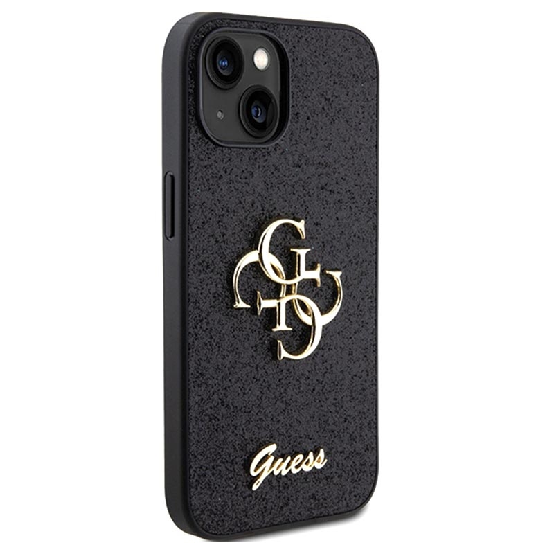 • Guess Fixed Glitter 4G Metal Logo Case for iPhone 15