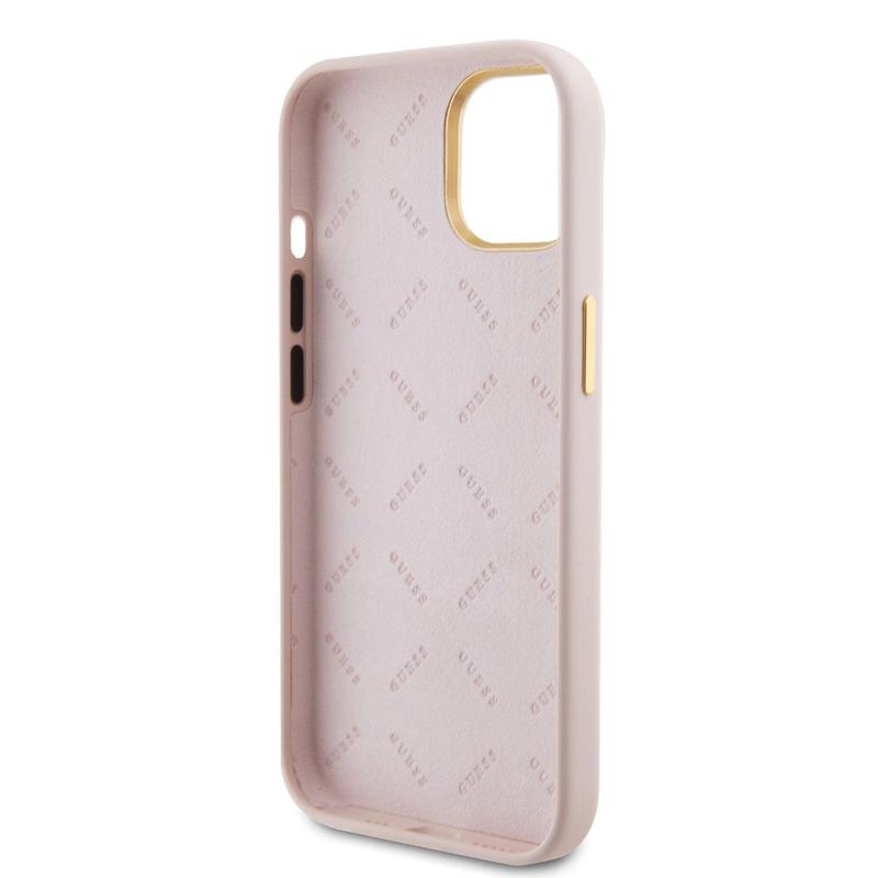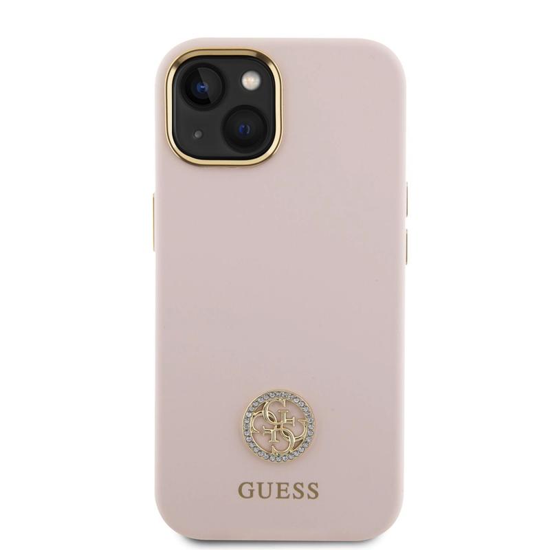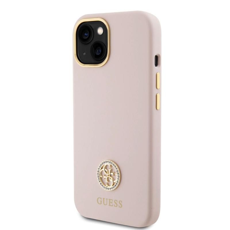 Guess 4G Strass Metal Logo Liquid Silicone Case pro iPhone 15