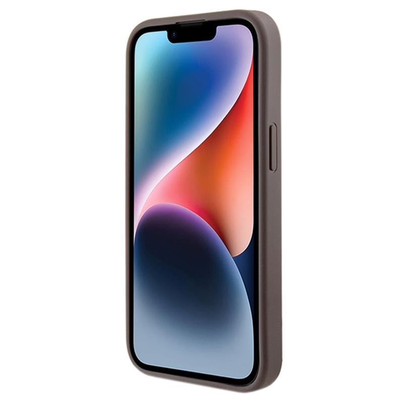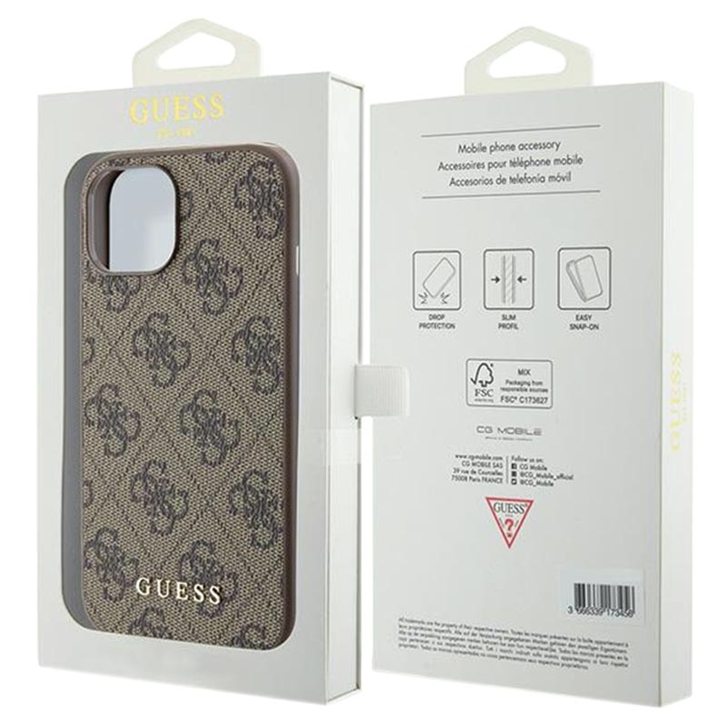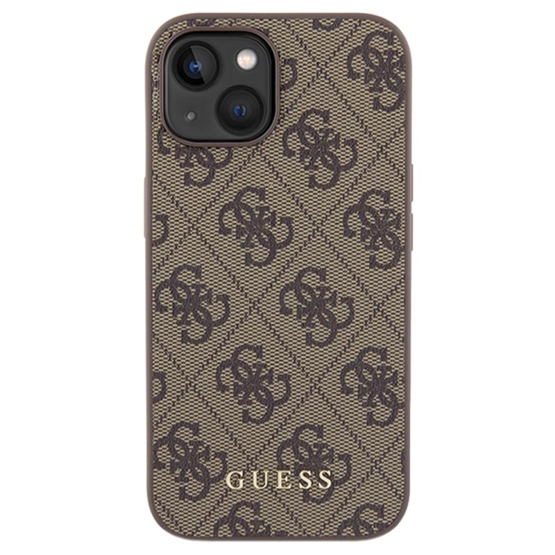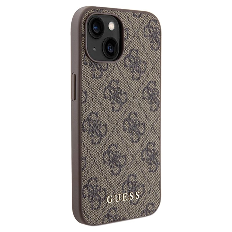 iPhone 15 Guess 4G Metal Gold Logo Hybridní Pouzdro - Hnědý