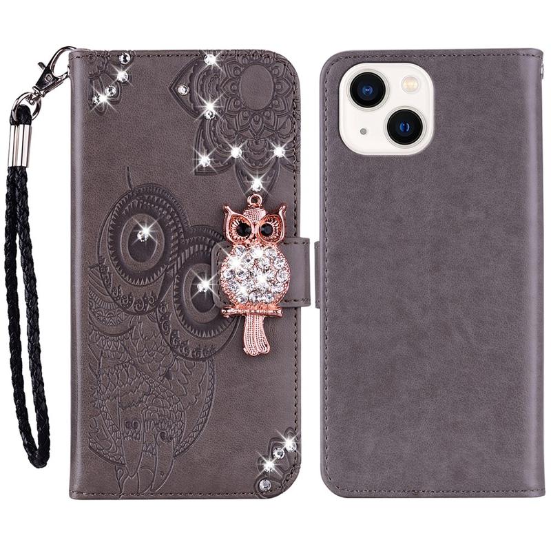 Owl Rhinestone Wallet Case for iPhone 15