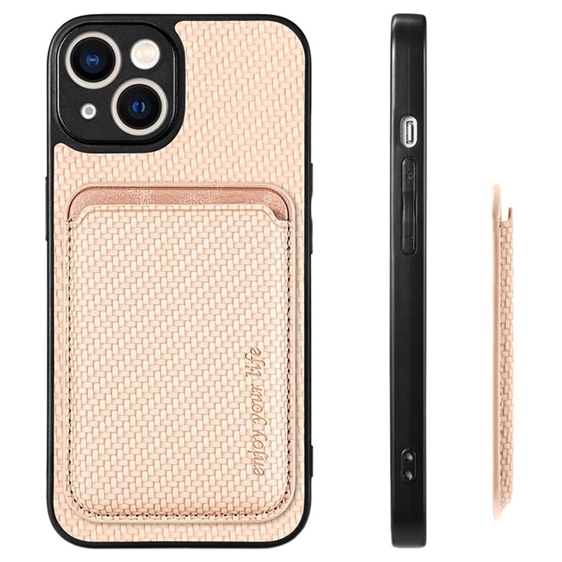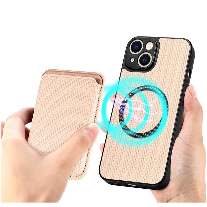 Magnetic Case with Card Holder for iPhone 15 Plus - Carbon Fiber