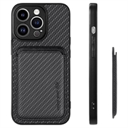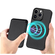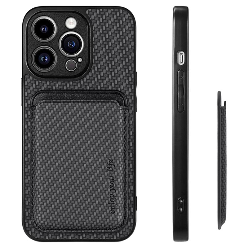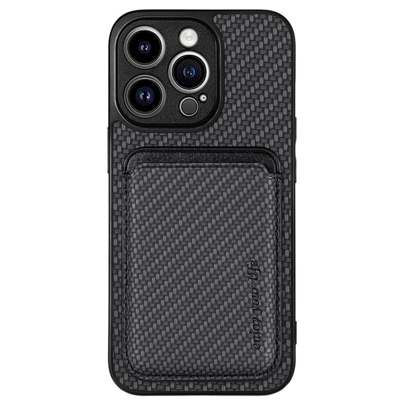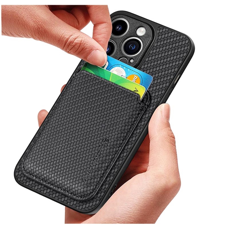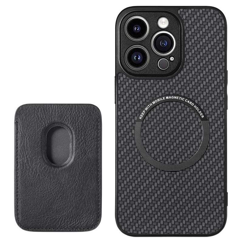 iPhone 15 Pro Magnetic Case with Card Holder - Carbon Fiber - Black