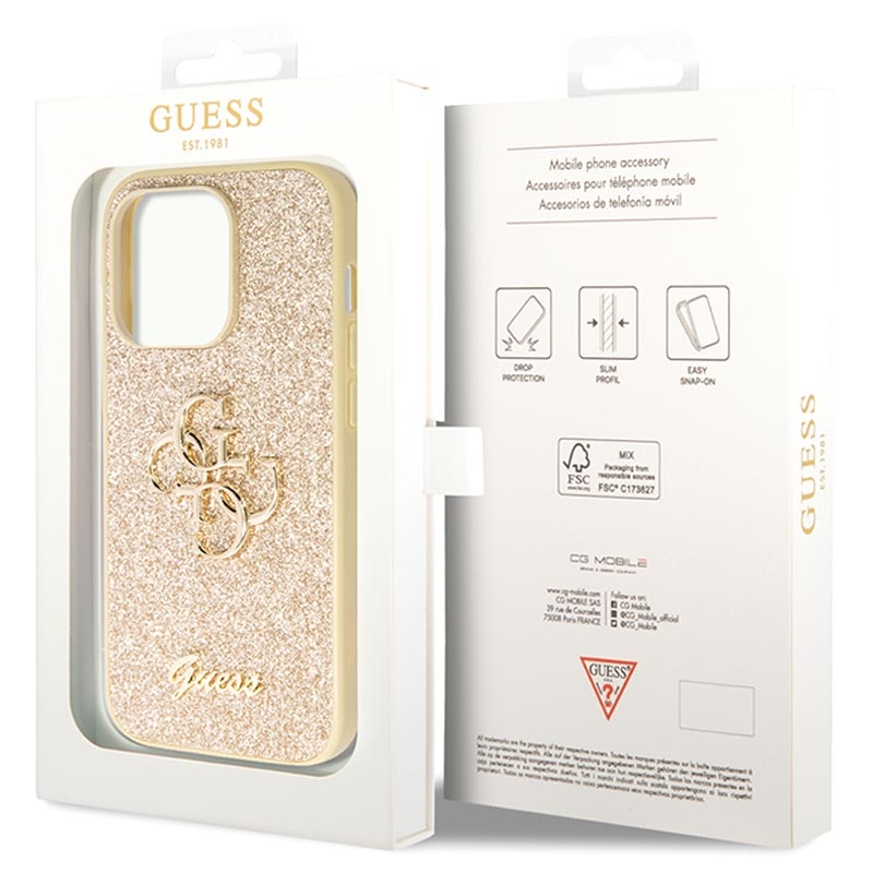 - Spectacular Guess Fixed Glitter 4G Metal Logo cover for iPhone 15 Pro Max