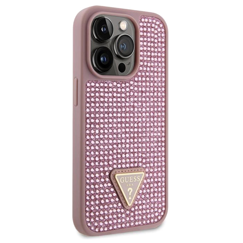 Guess Rhinestones Triangle Metal Logo Case for iPhone 15 Pro