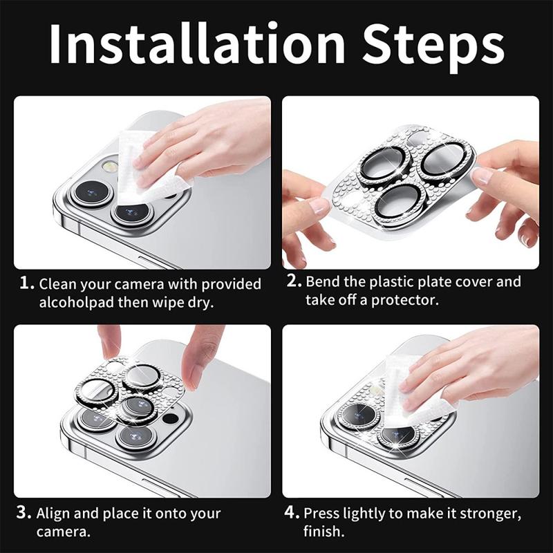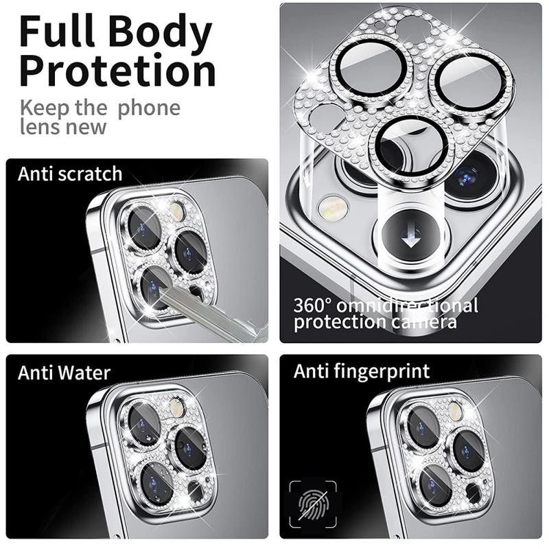This camera protector is made of premium tempered glass with 9H hardness, placed under the durable aluminum alloy ring decorated with shiny rhinestones. It is precisely crafted to perfectly fit the camera lenses on your iPhone 15 Pro, iPhone 15 Pro Max, with high transparency so that it won't affect the quality of captured images and videos.