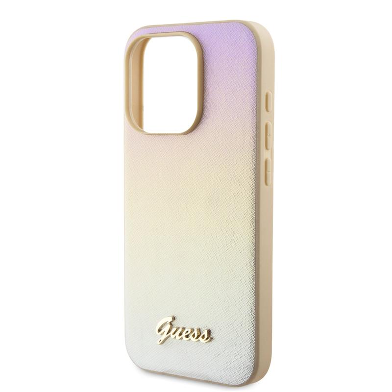 • Guess Iridescent Metal Script Hybrid Case for iPhone 15 Pro