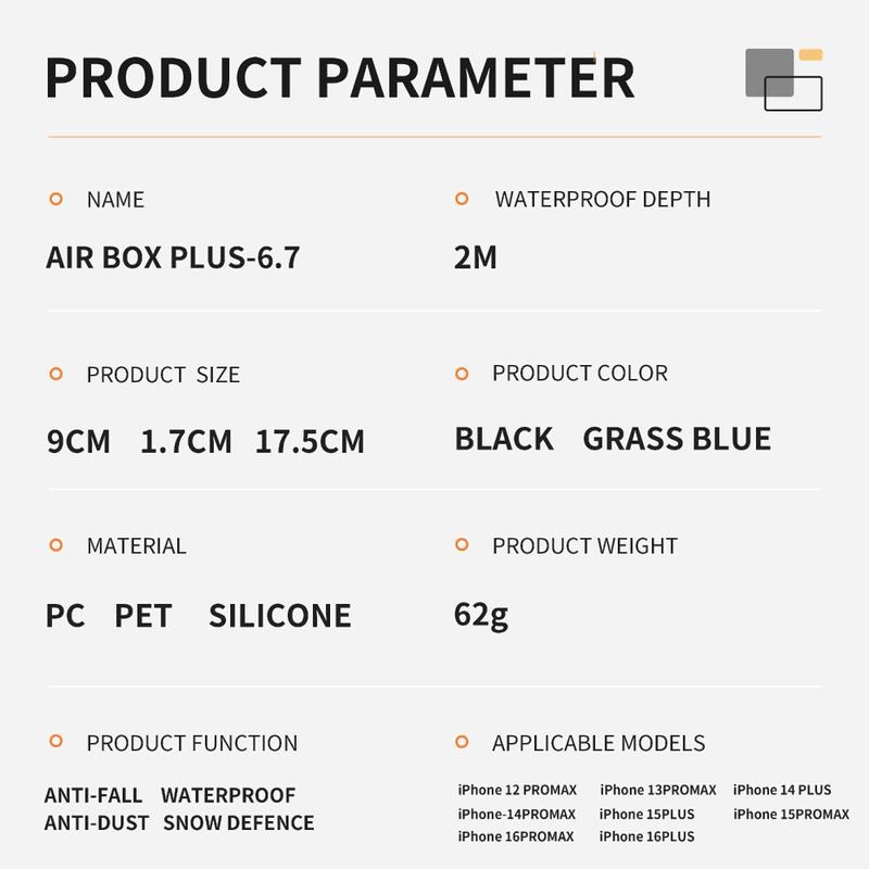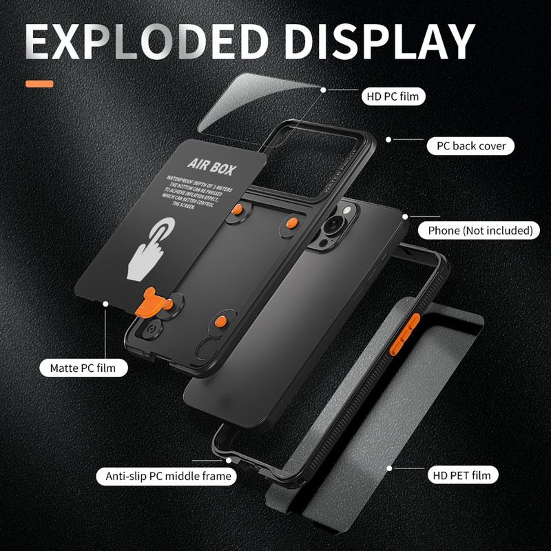 The phone must be assembled without any additional accessories such as screen protectors, decorations, or tempered glass attached to the phone's body (for iPhone installation reminder: align the mute button before assembly, the product screen is scratch-resistant, and there is no need for screen protectors before casing, as applying screen protectors may affect the waterproof effect).