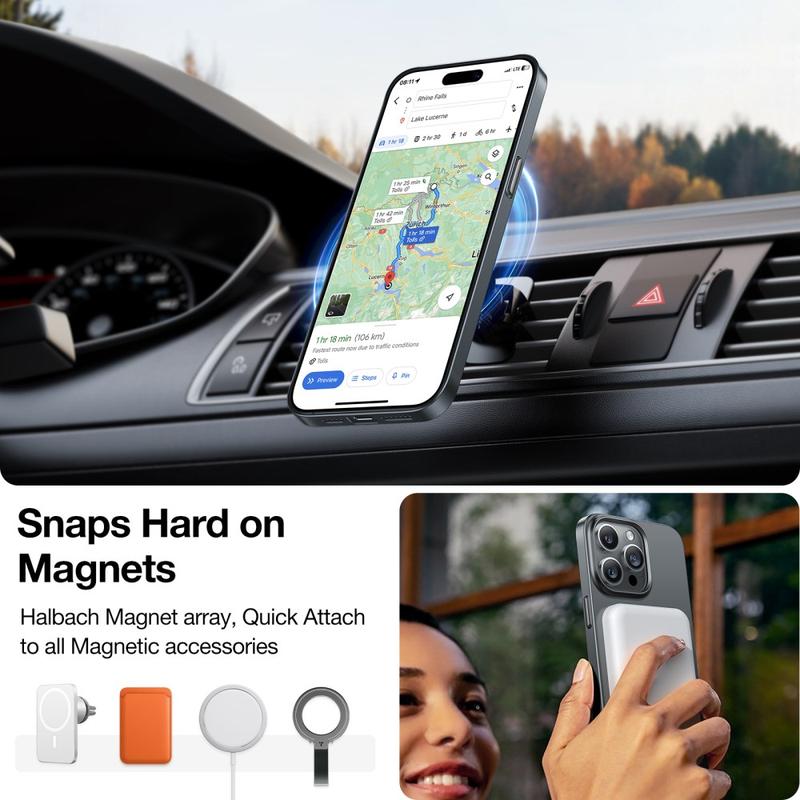 - MagSafe-grade magnetic core – integrated ring delivers a rock-solid hold on chargers, wallets and car mounts, even on bumpy roads.