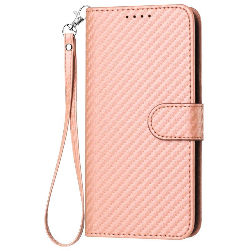 Premium Wallet Case with Strap for iPhone 15 Pro Max - Carbon Fiber Texture