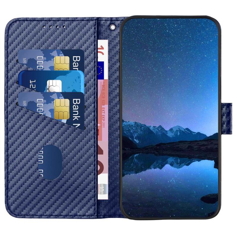 This wallet case offers elegant design, reliable protection, and smart usability. The textured carbon fiber finish adds a modern, professional look, while the inner TPU layer absorbs shocks from accidental drops. With hands-free functionality and a detachable strap, it’s built for comfort and versatility.