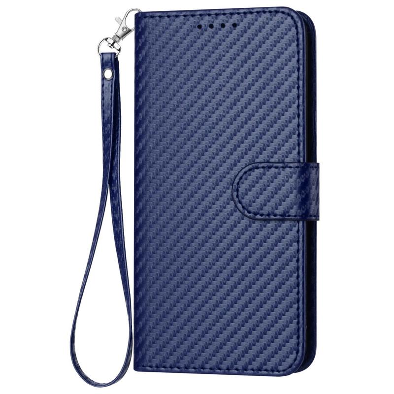 Premium Wallet Case with Strap for iPhone 15 Pro - Carbon Fiber Texture