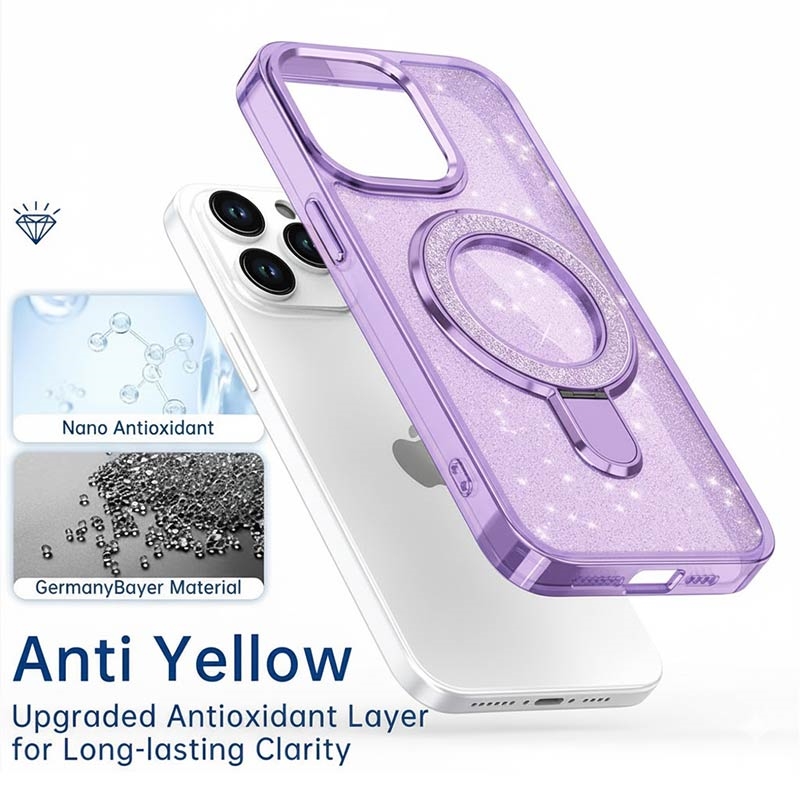 Glitter Case with Kickstand for iPhone 15 Pro - MagSafe Compatible TPU + PC Hybrid Kickstand Cover