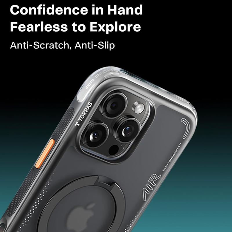 The Torras Ostand Q3 Air MagSafe Case for iPhone 15 Pro combines modern aesthetics with advanced protection. Crafted from high-quality TPU and PC materials, it provides a slim, stylish profile while offering a secure and comfortable grip.