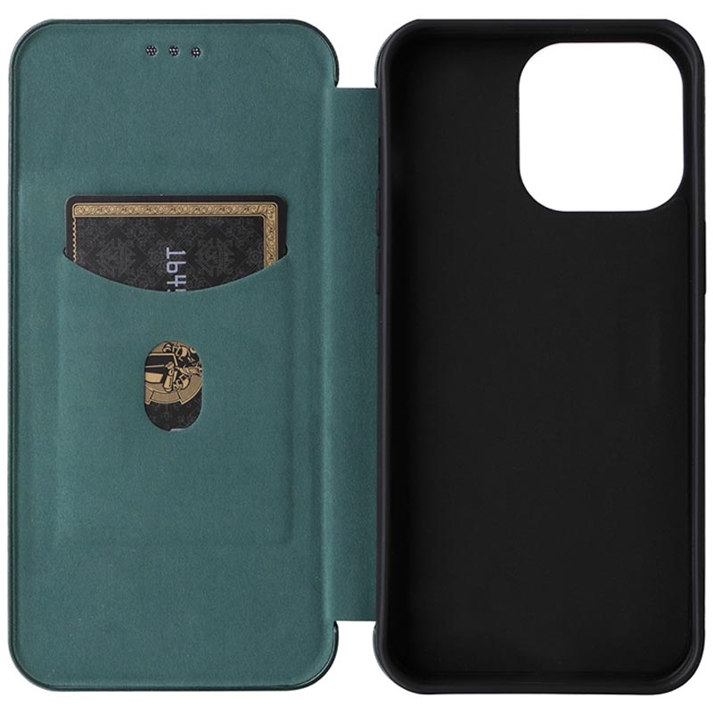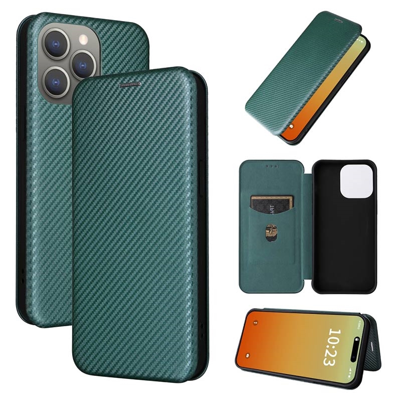 - Flipové pouzdro s texturou z uhlíkových vláken pro iPhone 15 Pro