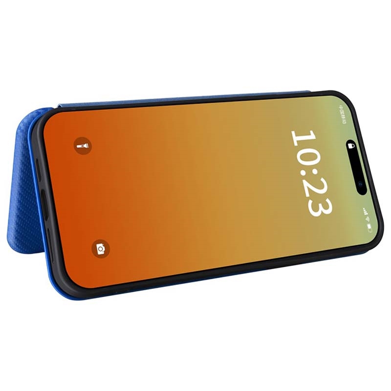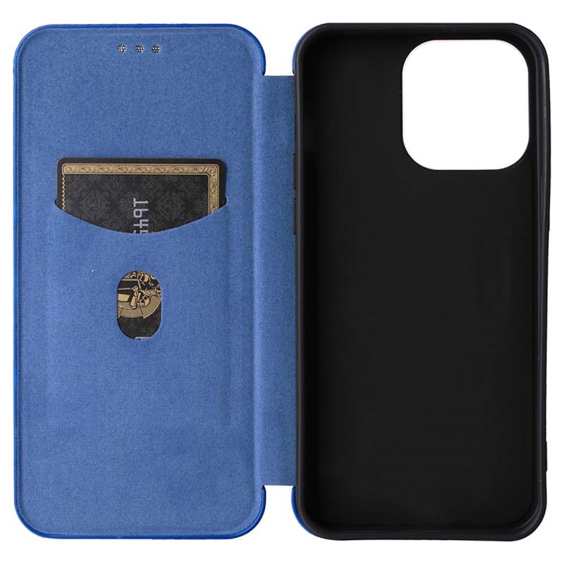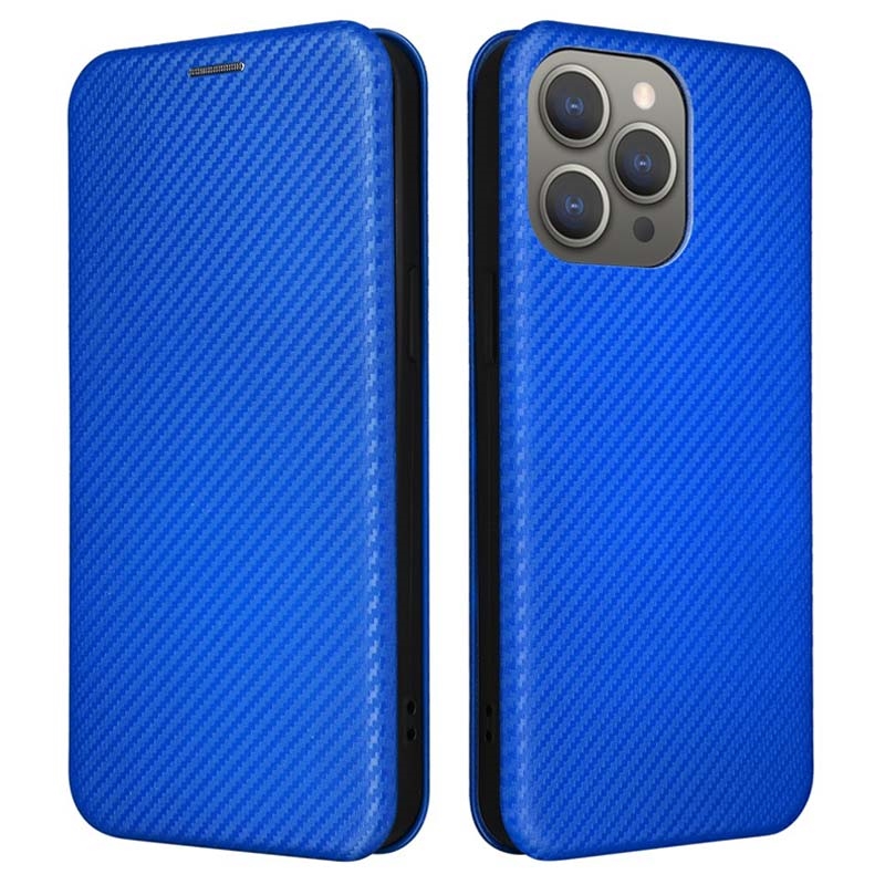 iPhone 15 Pro Max Flip Pouzdro - Uhlíkové Vlákno - Modrý