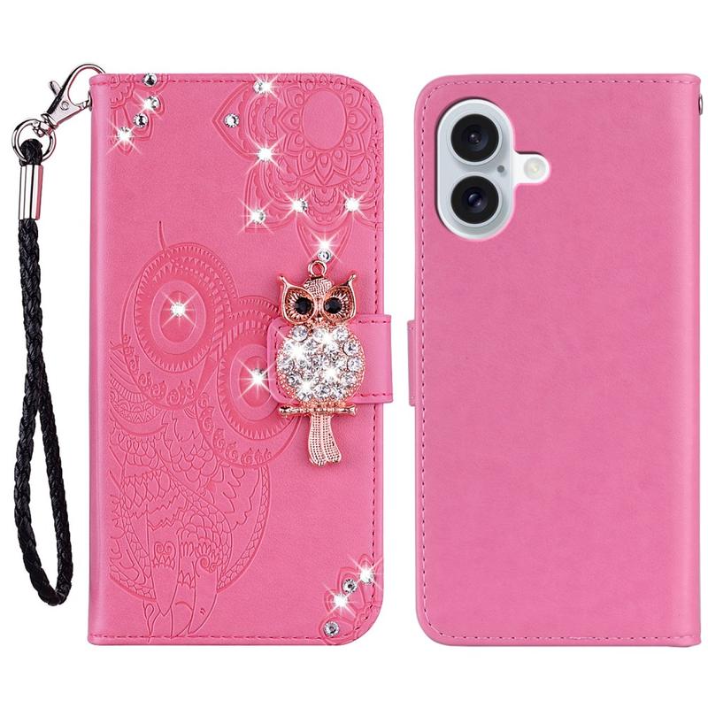 Keep your iPhone 16 safe and stylish with this Owl Rhinestone Wallet Case. Made with a premium polyurethane shell and a flexible TPU inner case, this case is durable for long term use, providing protection against daily wear and tear, scratches, marks, and scrapes. The distinctive owl imprint and rhinestone decoration make this case eye-catching and trendy, while the practical design combines your wallet and phone case into one handy unit. The supporting stand design allows for convenient free-hands use when watching movies or reading, while the ultra-strong magnetic closure keeps all your valuable items secure. This case ensures full access to ports and function buttons, speakers, and the camera for hassle-free use. It also comes with a handy strap for easy carrying, making it the perfect accessory for your iPhone 16.