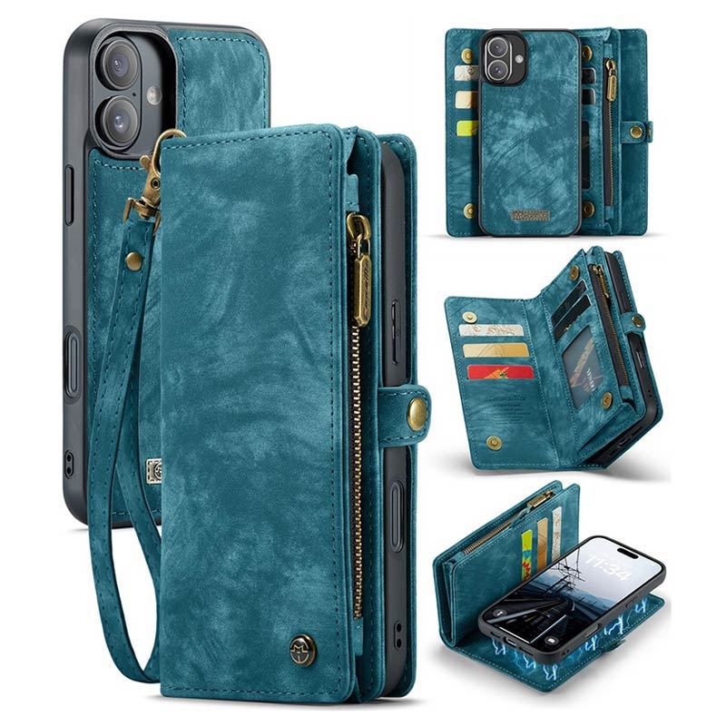 iPhone 16 Plus Caseme 008 2-in-1 Multifunctional Wallet Case - Blue