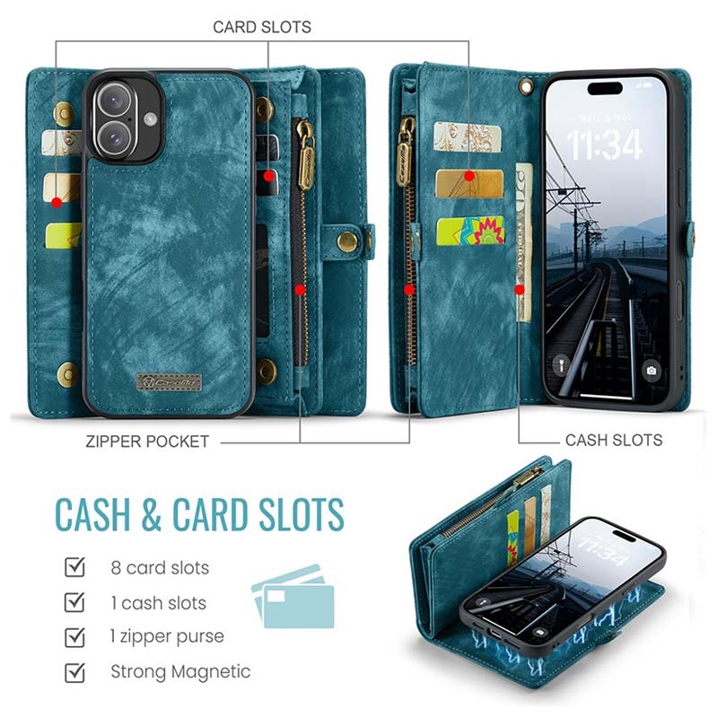 Caseme 008 2-in-1 Multifunctional Wallet Case for iPhone 16 Plus