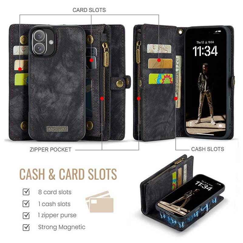 Caseme 008 2-in-1 Multifunctional Wallet Case for iPhone 16 Plus