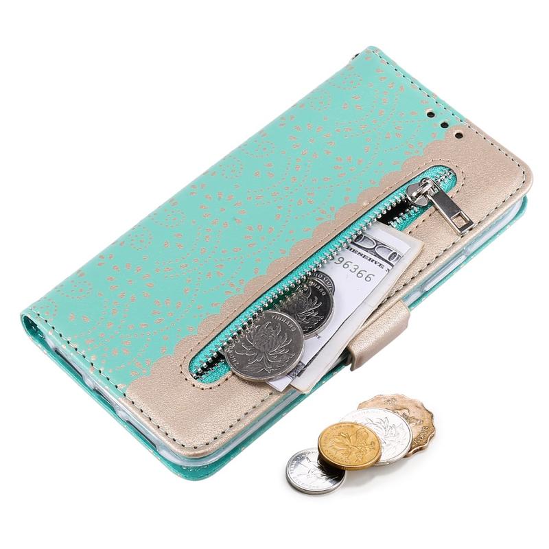 This incredibly stylish wallet case with lace pattern protects your iPhone 16 Plus from damage, and front zipper pocket lets you store paper money and coins.