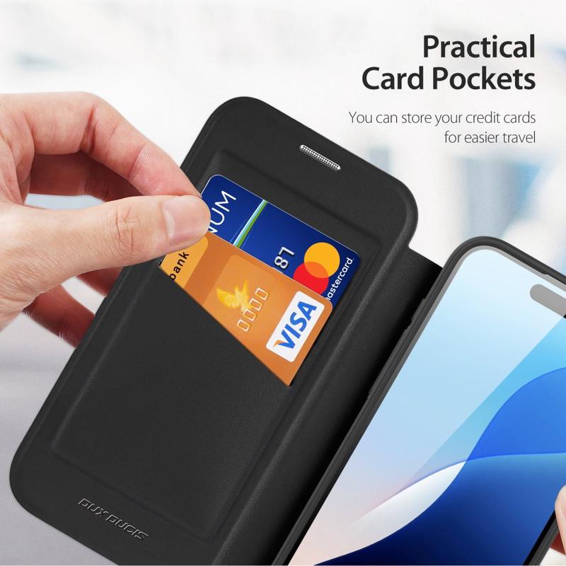 Elevate your iPhone 16 Pro with the Dux Ducis Skin X Pro Series Magnetic Case, designed for both style and functionality. This luxurious polyurethane case features a magnetic closure, rotary kickstand, and a convenient card slot, offering all-in-one protection and convenience. The case is crafted from premium materials, ensuring durability while maintaining a sleek and slim profile. Its versatile design makes it perfect for hands-free viewing, secure storage, and stylish protection.