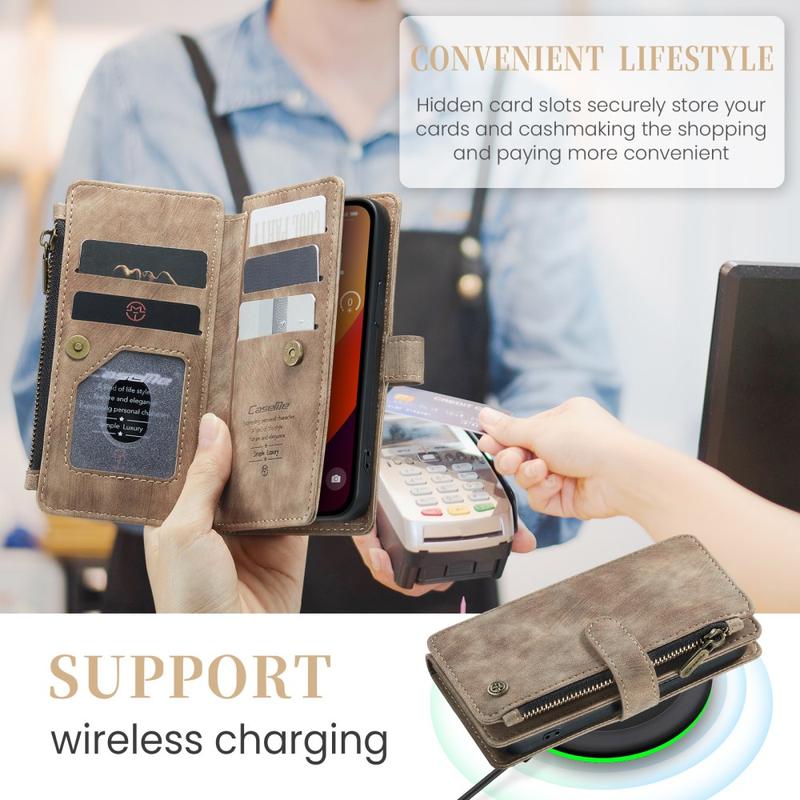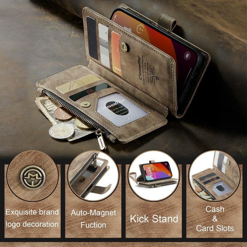 The Caseme C30 multifunctional wallet case for iPhone 16 Pro brings exceptional all-around protection and an exclusive, refined design. This elegant case is made of premium polyurethane, reinforced with a shock-resistant TPU inner cover that snuggles your iPhone 16 Pro perfectly. Meanwhile, the Caseme C30 wallet case is enhanced with numerous card slots, one large money compartment inside, and one outside zipper pocket, all protected by a secure magnetic closure.