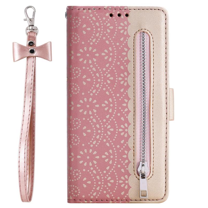 This incredibly stylish wallet case with lace pattern protects your iPhone 16 Pro Max from damage, and front zipper pocket lets you store paper money and coins.