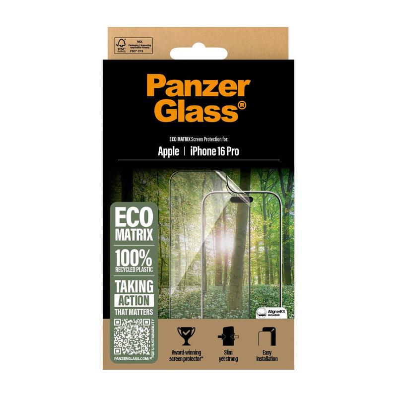 PanzerGlass Eco Matrix Ultra-Wide Fit Screen Protector with EasyAligner for iPhone 16 Pro - 100% Recycled