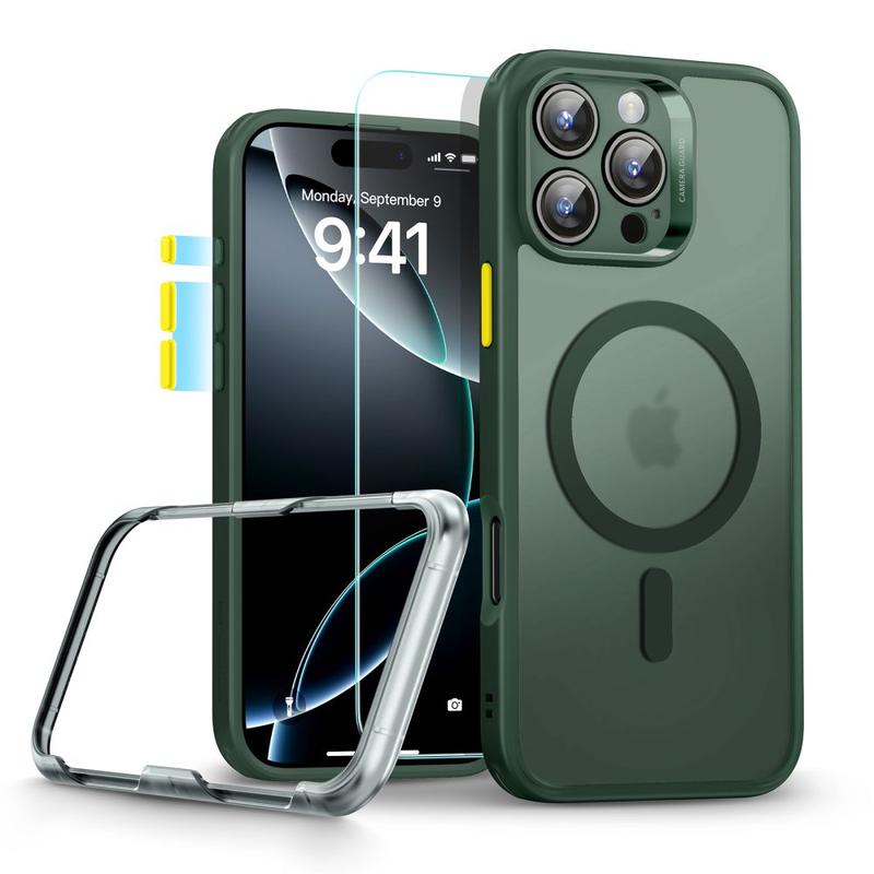 ESR HaloLock MagSafe Classic Pro Set for iPhone 16 Pro Max - Military Grade Hybrid Cover, Tempered Glass Screen Protector, Camera Lens Protector